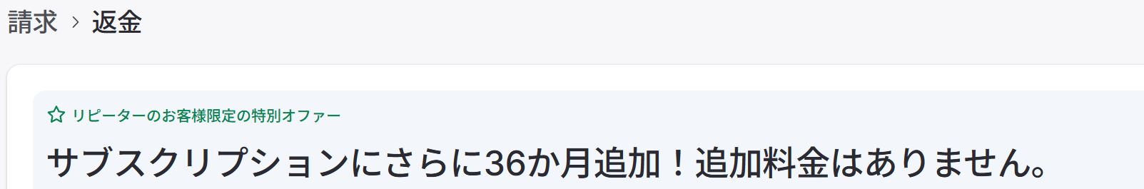 なお公式サイトにも返金方法が具体的に記載されているが、この”返金”のボタンが、特定期間をすぎていると表示されない。