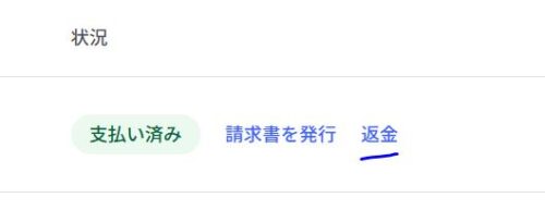 2,提示されたURLから返金手続きをすすめる。支払い状況の「返金」のリンクをクリック